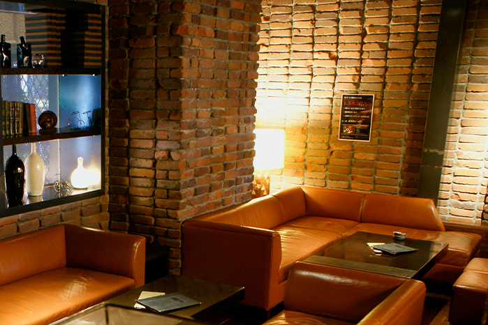 店内はレンガや木を配した落ち着いた雰囲気で、大人の嗜好を満たす、贅沢な時間が流れる空間。